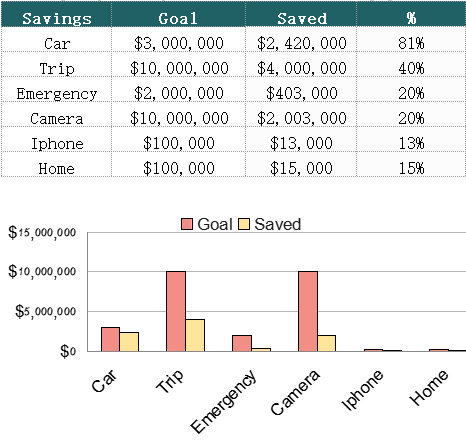 Set savings goals and track your progress month by month — without guessing or manual math.
