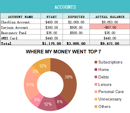 Track Finances • Daily Spending Log • Automated Charts • Multi-Device Access • Savings & Debts Planning