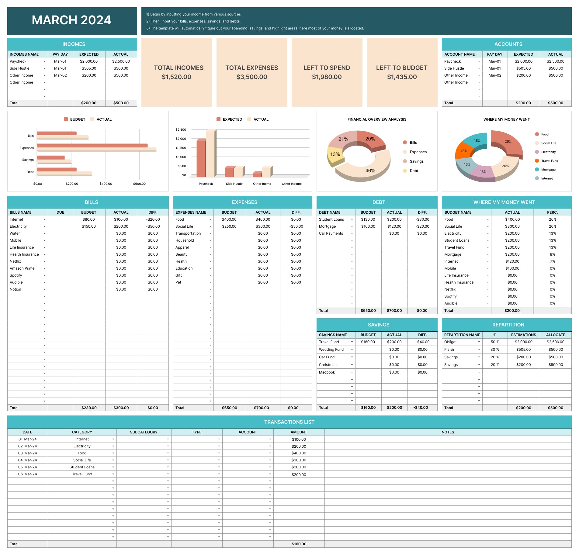 Yes. All totals, summaries, and charts update automatically as you enter your data.